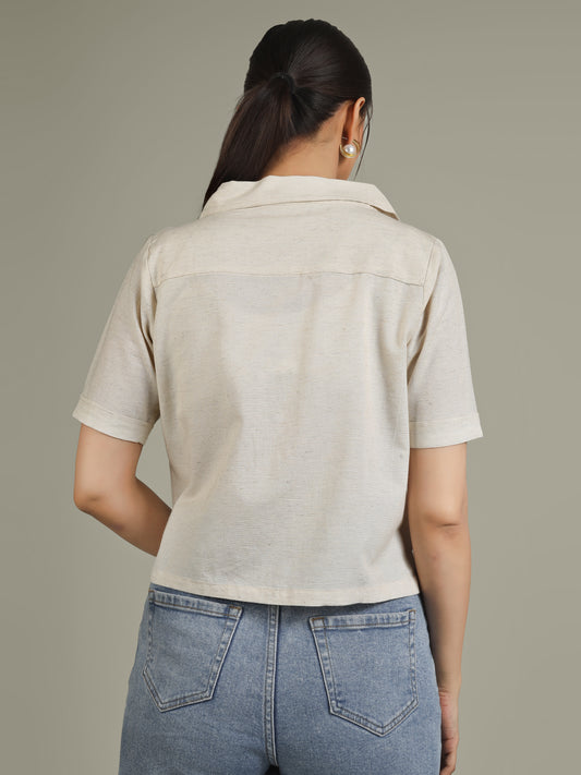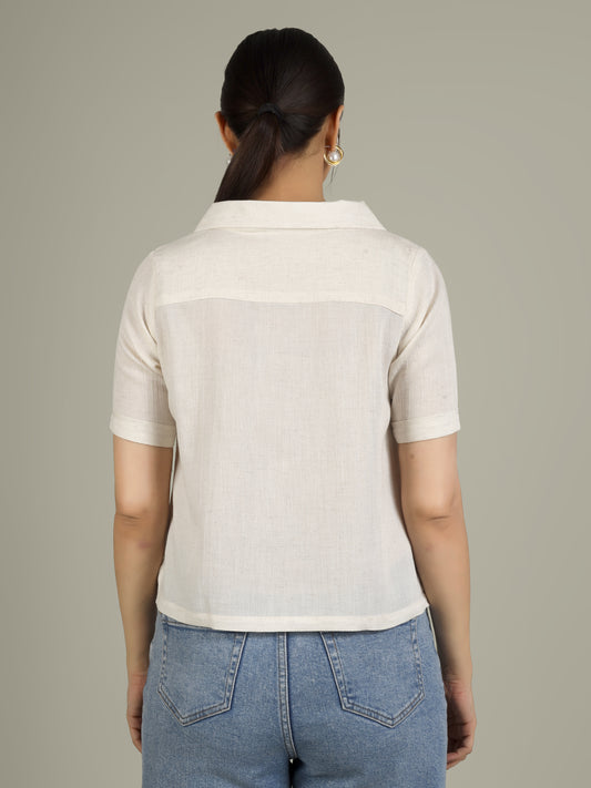 Women Floral Embroidered Linen Blend Casual Shirt